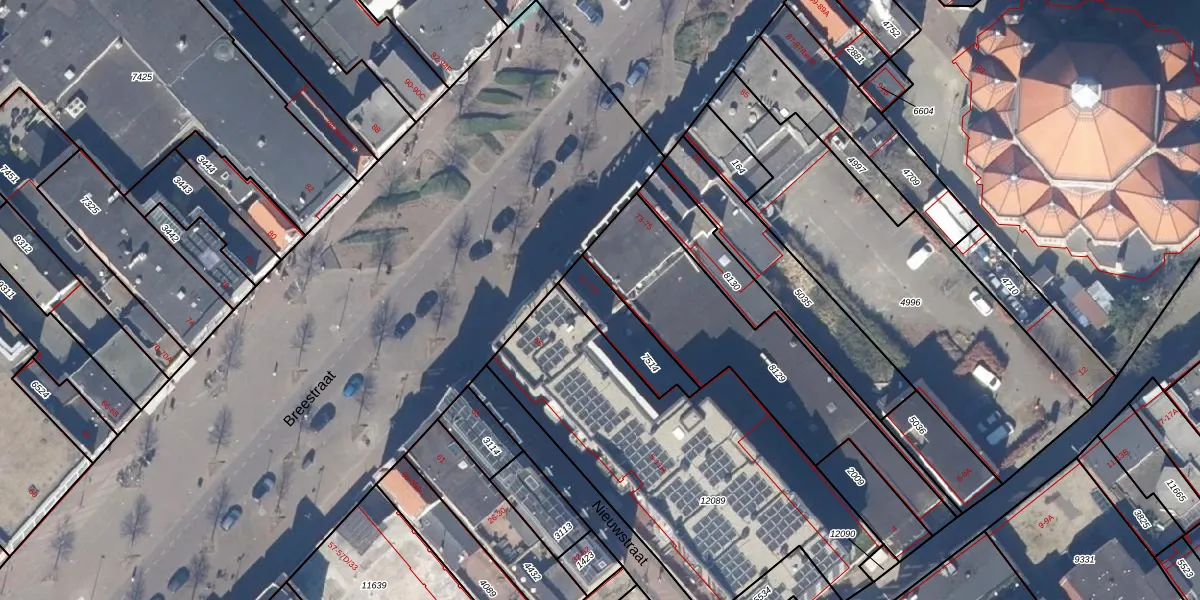 Het perceel waarop Breestraat 71-A staat heeft een oppervlakte van 173 m². Dit is een middelgroot perceel. De perceeloppervlakte wordt geregistreerd door het Kadaster. Gedetailleerde informatie over de maten van dit perceel kunt u vinden in het rapport Kadastrale kaart met maatvoering van Breestraat 71-A.