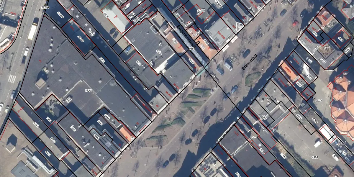 Het perceel waarop Breestraat 94-C staat heeft een oppervlakte van 758 m². Dit is een groot perceel. De perceeloppervlakte wordt geregistreerd door het Kadaster. Gedetailleerde informatie over de maten van dit perceel kunt u vinden in het rapport Kadastrale kaart met maatvoering van Breestraat 94-C.