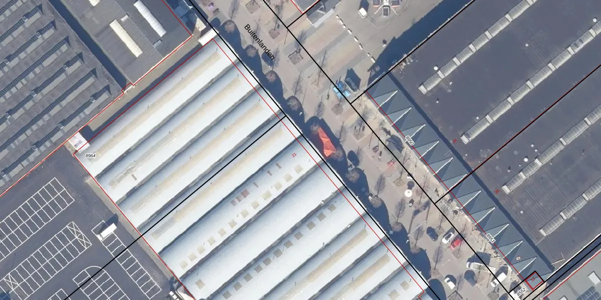 Het perceel waarop Buitenlanden 21 staat heeft een oppervlakte van 1,7 ha. Dit is een zeer groot perceel. De perceeloppervlakte wordt geregistreerd door het Kadaster. Gedetailleerde informatie over de maten van dit perceel kunt u vinden in het rapport Kadastrale kaart met maatvoering van Buitenlanden 21.