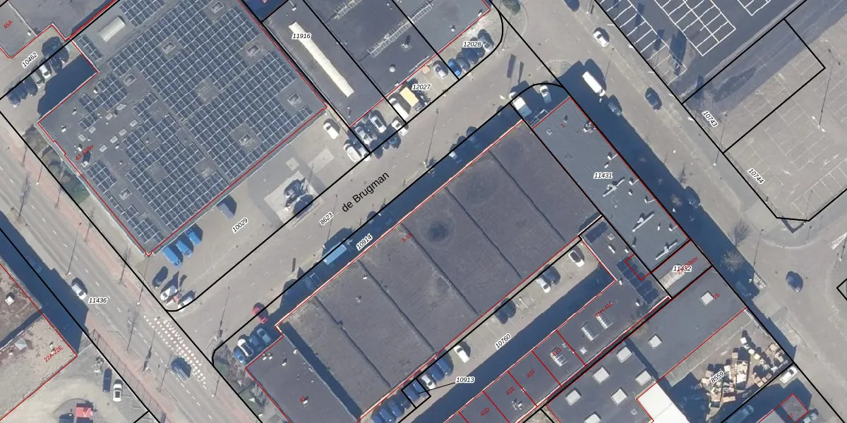 Het perceel waarop de Brugman 7 staat heeft een oppervlakte van 3455 m². Dit is een zeer groot perceel. De perceeloppervlakte wordt geregistreerd door het Kadaster. Gedetailleerde informatie over de maten van dit perceel kunt u vinden in het rapport Kadastrale kaart met maatvoering van de Brugman 7.