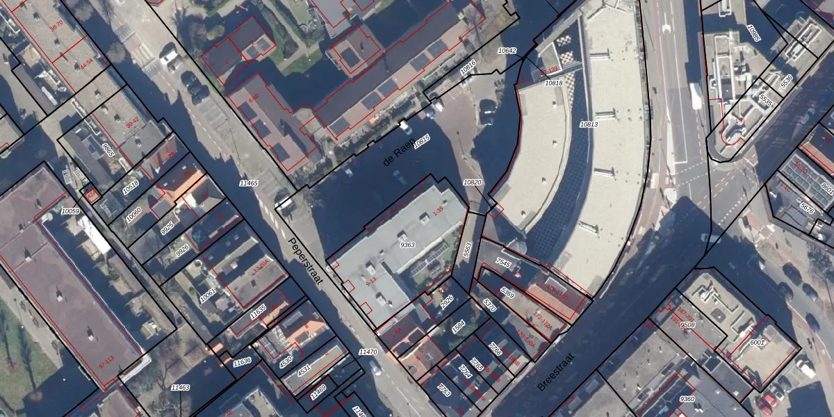 Het perceel waarop de Raep 27 staat heeft een oppervlakte van 685 m². Dit is een groot perceel. De perceeloppervlakte wordt geregistreerd door het Kadaster. Gedetailleerde informatie over de maten van dit perceel kunt u vinden in het rapport Kadastrale kaart met maatvoering van de Raep 27.