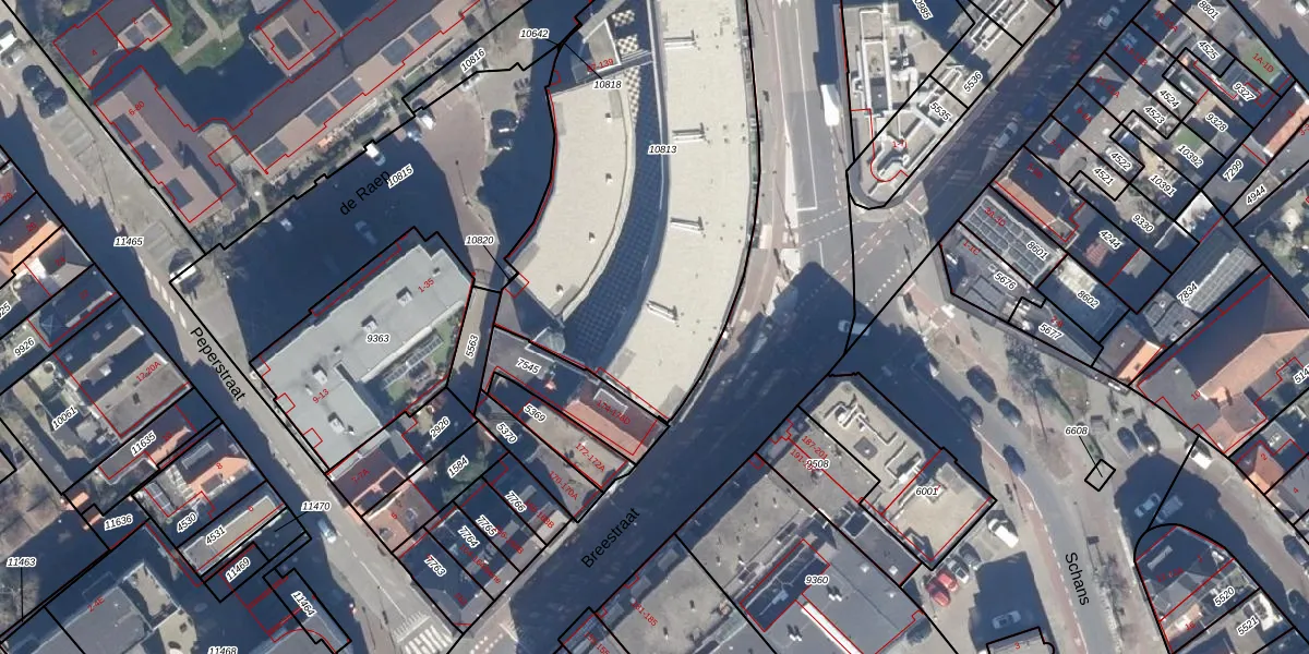Het perceel waarop de Raep 65 staat heeft een oppervlakte van 2070 m². Dit is een zeer groot perceel. De perceeloppervlakte wordt geregistreerd door het Kadaster. Gedetailleerde informatie over de maten van dit perceel kunt u vinden in het rapport Kadastrale kaart met maatvoering van de Raep 65.