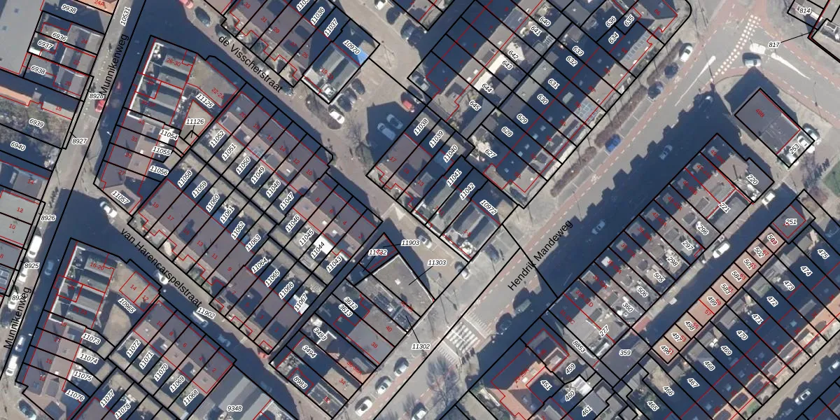 Het perceel waarop de Visscherstraat 11 staat heeft een oppervlakte van 80 m². Dit is een klein perceel. De perceeloppervlakte wordt geregistreerd door het Kadaster. Gedetailleerde informatie over de maten van dit perceel kunt u vinden in het rapport Kadastrale kaart met maatvoering van de Visscherstraat 11.