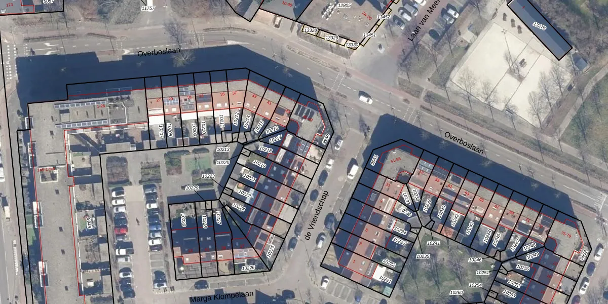 Het perceel waarop de Vriendschap 14 staat heeft een oppervlakte van 102 m². Dit is een middelgroot perceel. De perceeloppervlakte wordt geregistreerd door het Kadaster. Gedetailleerde informatie over de maten van dit perceel kunt u vinden in het rapport Kadastrale kaart met maatvoering van de Vriendschap 14.