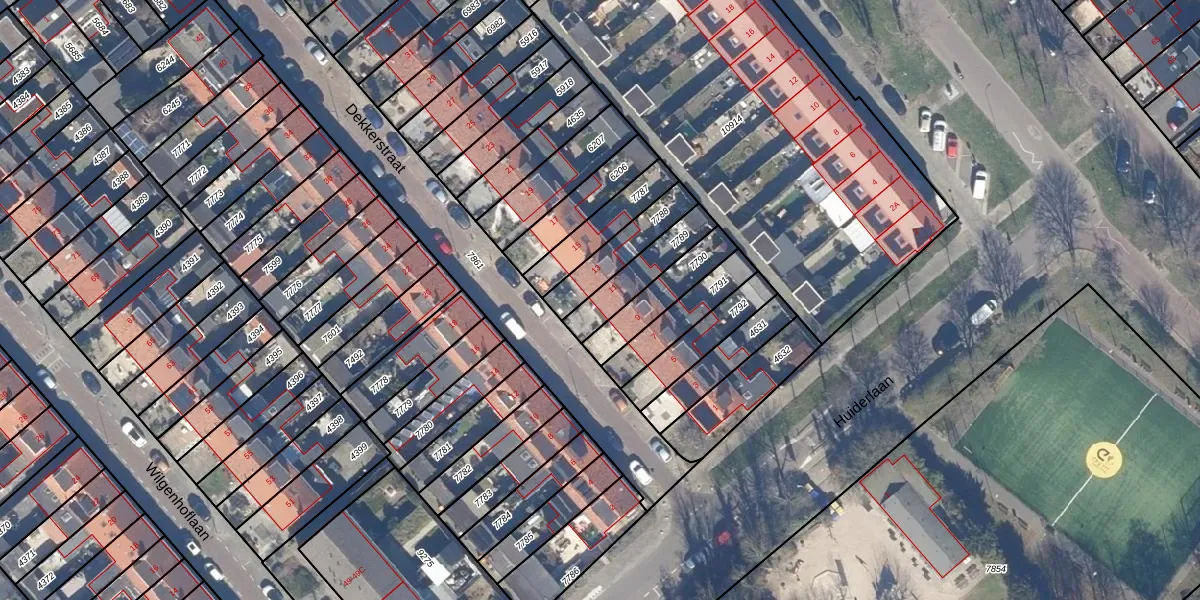 Het perceel waarop Dekkerstraat 11 staat heeft een oppervlakte van 150 m². Dit is een middelgroot perceel. De perceeloppervlakte wordt geregistreerd door het Kadaster. Gedetailleerde informatie over de maten van dit perceel kunt u vinden in het rapport Kadastrale kaart met maatvoering van Dekkerstraat 11.