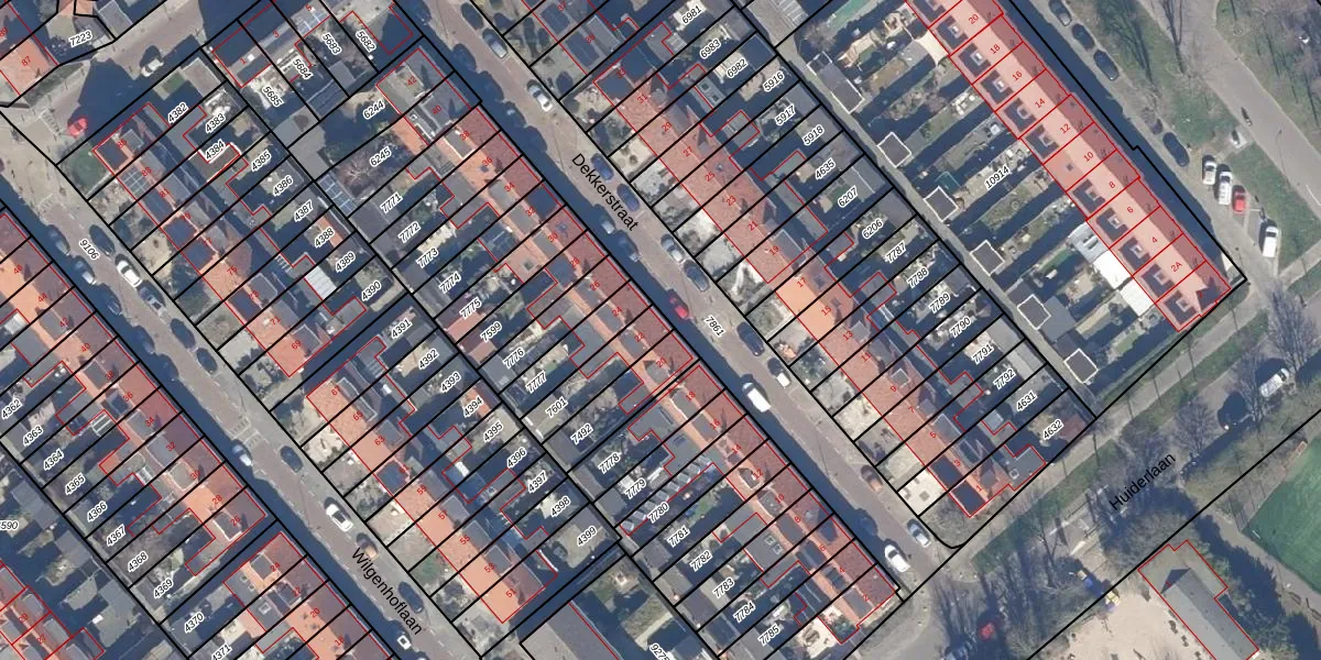 Het perceel waarop Dekkerstraat 22 staat heeft een oppervlakte van 136 m². Dit is een middelgroot perceel. De perceeloppervlakte wordt geregistreerd door het Kadaster. Gedetailleerde informatie over de maten van dit perceel kunt u vinden in het rapport Kadastrale kaart met maatvoering van Dekkerstraat 22.