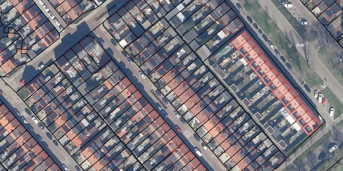 Het perceel waarop Dekkerstraat 29 staat heeft een oppervlakte van 150 m². Dit is een middelgroot perceel. De perceeloppervlakte wordt geregistreerd door het Kadaster. Gedetailleerde informatie over de maten van dit perceel kunt u vinden in het rapport Kadastrale kaart met maatvoering van Dekkerstraat 29.