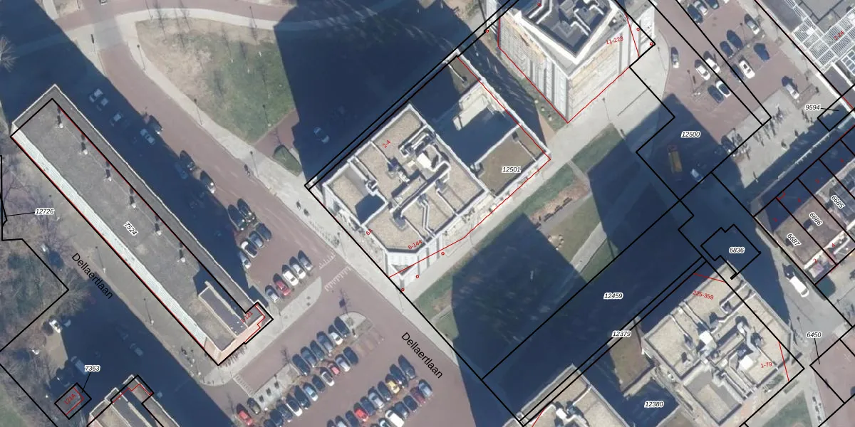 Het perceel waarop Dellaertlaan 130 staat heeft een oppervlakte van 4553 m². Dit is een zeer groot perceel. De perceeloppervlakte wordt geregistreerd door het Kadaster. Gedetailleerde informatie over de maten van dit perceel kunt u vinden in het rapport Kadastrale kaart met maatvoering van Dellaertlaan 130.