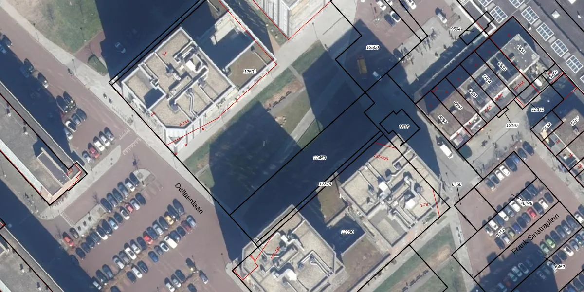 Het perceel waarop Dellaertlaan 62 staat heeft een oppervlakte van 4553 m². Dit is een zeer groot perceel. De perceeloppervlakte wordt geregistreerd door het Kadaster. Gedetailleerde informatie over de maten van dit perceel kunt u vinden in het rapport Kadastrale kaart met maatvoering van Dellaertlaan 62.
