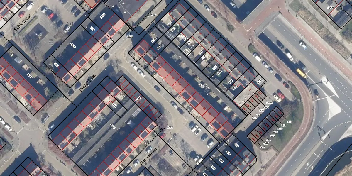 Het perceel waarop Diezestraat 30 staat heeft een oppervlakte van 1300 m². Dit is een zeer groot perceel. De perceeloppervlakte wordt geregistreerd door het Kadaster. Gedetailleerde informatie over de maten van dit perceel kunt u vinden in het rapport Kadastrale kaart met maatvoering van Diezestraat 30.