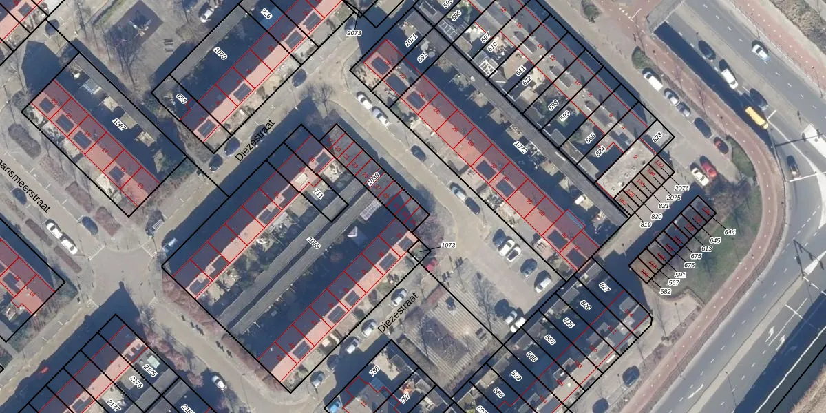 Het perceel waarop Diezestraat 33 staat heeft een oppervlakte van 190 m². Dit is een middelgroot perceel. De perceeloppervlakte wordt geregistreerd door het Kadaster. Gedetailleerde informatie over de maten van dit perceel kunt u vinden in het rapport Kadastrale kaart met maatvoering van Diezestraat 33.