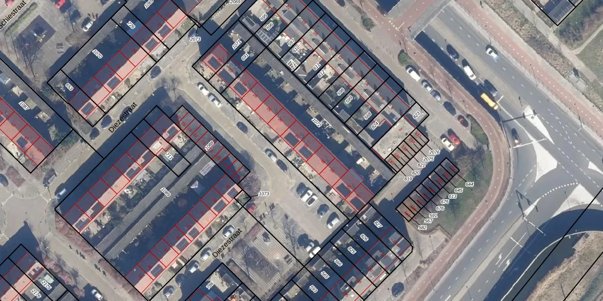 Het perceel waarop Diezestraat 34 staat heeft een oppervlakte van 1300 m². Dit is een zeer groot perceel. De perceeloppervlakte wordt geregistreerd door het Kadaster. Gedetailleerde informatie over de maten van dit perceel kunt u vinden in het rapport Kadastrale kaart met maatvoering van Diezestraat 34.