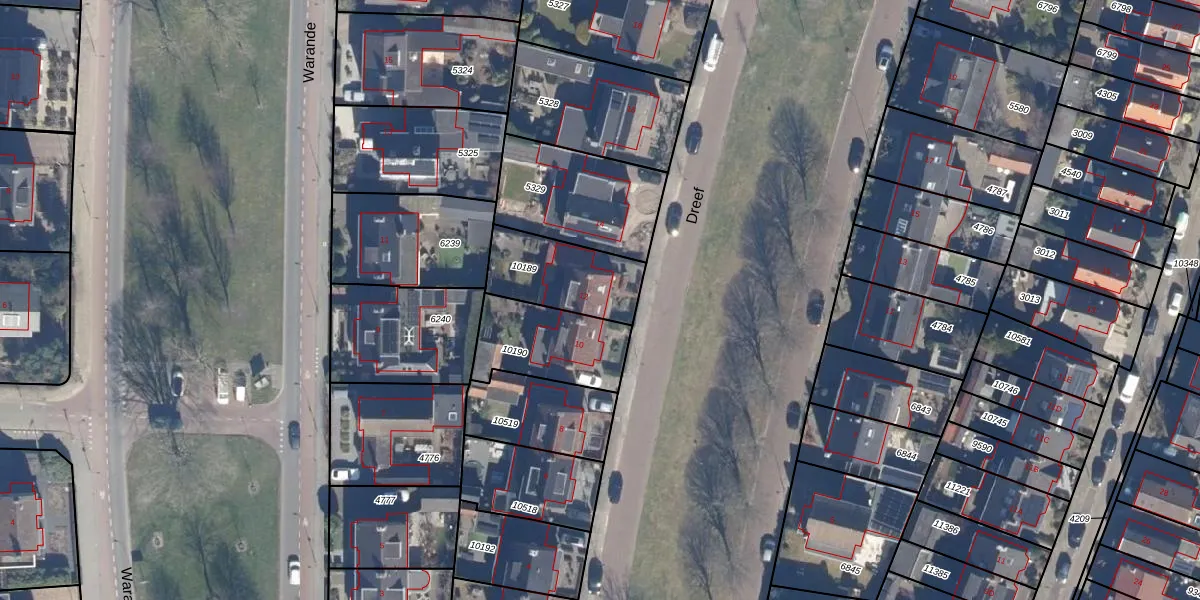 Gebruik de zoekbalk of klik op een perceel voor informatie over de adressen binnen dit perceel.