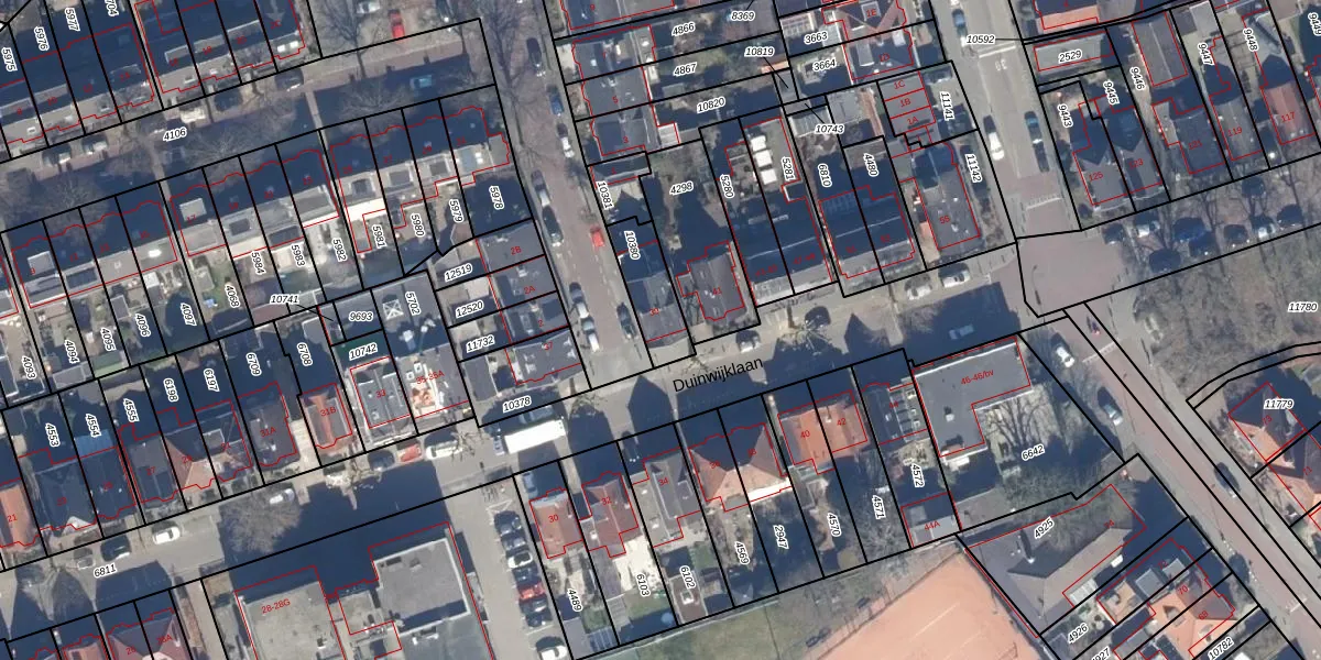 Het perceel waarop Duinwijklaan 39 staat heeft een oppervlakte van 156 m². Dit is een middelgroot perceel. De perceeloppervlakte wordt geregistreerd door het Kadaster. Gedetailleerde informatie over de maten van dit perceel kunt u vinden in het rapport Kadastrale kaart met maatvoering van Duinwijklaan 39.