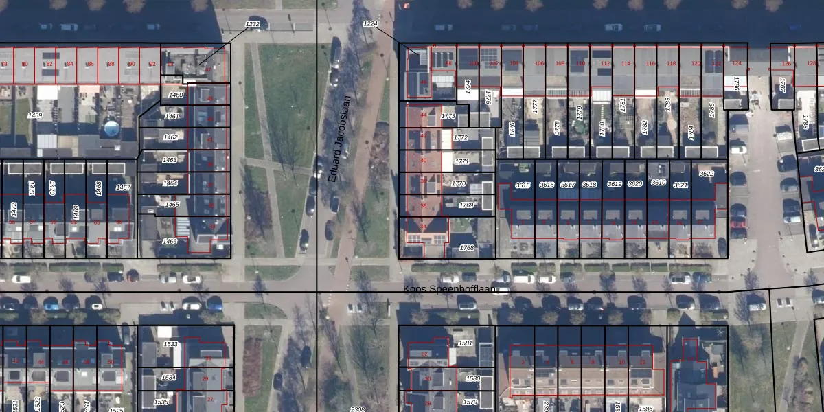 Het perceel waarop Eduard Jacobslaan 36 staat heeft een oppervlakte van 127 m². Dit is een middelgroot perceel. De perceeloppervlakte wordt geregistreerd door het Kadaster. Gedetailleerde informatie over de maten van dit perceel kunt u vinden in het rapport Kadastrale kaart met maatvoering van Eduard Jacobslaan 36.