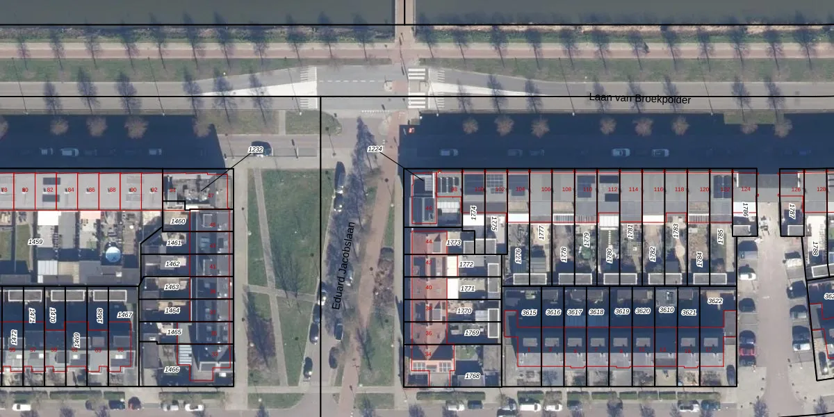 Het perceel waarop Eduard Jacobslaan 46 staat heeft een oppervlakte van 197 m². Dit is een middelgroot perceel. De perceeloppervlakte wordt geregistreerd door het Kadaster. Gedetailleerde informatie over de maten van dit perceel kunt u vinden in het rapport Kadastrale kaart met maatvoering van Eduard Jacobslaan 46.