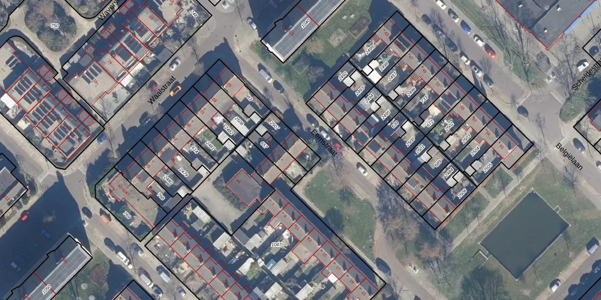Gebruik de zoekbalk of klik op een perceel voor informatie over de adressen binnen dit perceel.