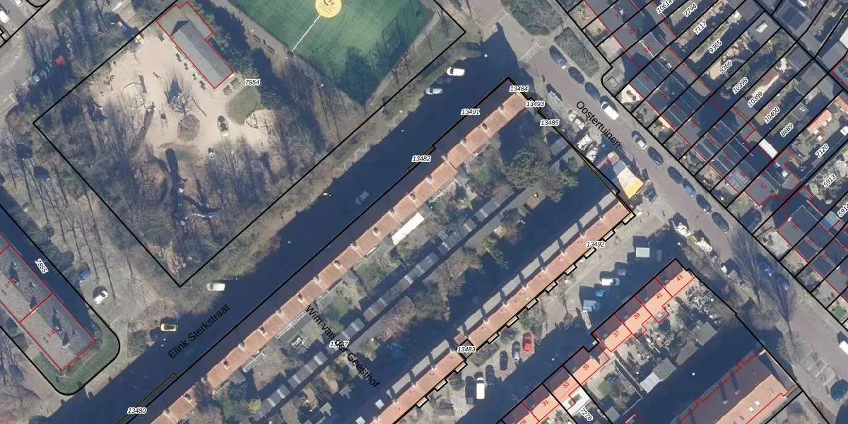 Het perceel waarop Elink Sterkstraat 121 staat heeft een oppervlakte van 6255 m². Dit is een zeer groot perceel. De perceeloppervlakte wordt geregistreerd door het Kadaster. Gedetailleerde informatie over de maten van dit perceel kunt u vinden in het rapport Kadastrale kaart met maatvoering van Elink Sterkstraat 121.