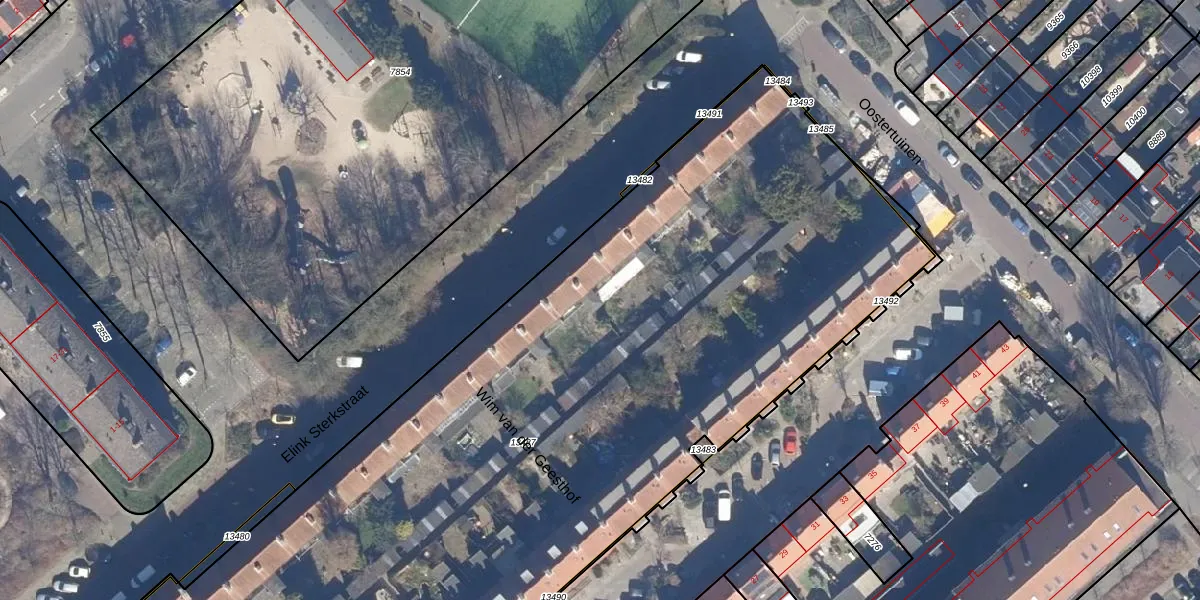 Het perceel waarop Elink Sterkstraat 41 staat heeft een oppervlakte van 6255 m². Dit is een zeer groot perceel. De perceeloppervlakte wordt geregistreerd door het Kadaster. Gedetailleerde informatie over de maten van dit perceel kunt u vinden in het rapport Kadastrale kaart met maatvoering van Elink Sterkstraat 41.