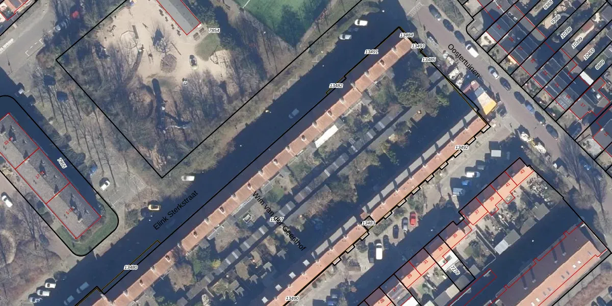 Het perceel waarop Elink Sterkstraat 43 staat heeft een oppervlakte van 6255 m². Dit is een zeer groot perceel. De perceeloppervlakte wordt geregistreerd door het Kadaster. Gedetailleerde informatie over de maten van dit perceel kunt u vinden in het rapport Kadastrale kaart met maatvoering van Elink Sterkstraat 43.