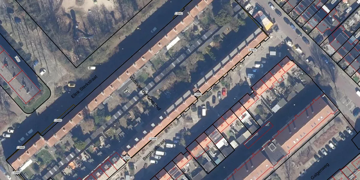 Elink Sterkstraat 75 is gelegen op kadastraal perceel WIJ02B13487. Deze kadastrale aanduiding is uniek en wordt gebruikt door het Kadaster om eigendomsrechten en andere zakelijke rechten vast te leggen. Het perceel maakt onderdeel uit van de kadastrale gemeente Wijk aan Zee en Duin.