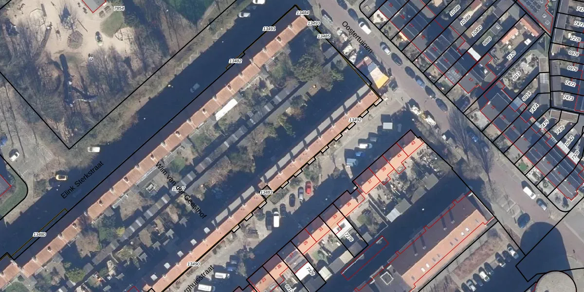 Het perceel waarop Elink Sterkstraat 85 staat heeft een oppervlakte van 6255 m². Dit is een zeer groot perceel. De perceeloppervlakte wordt geregistreerd door het Kadaster. Gedetailleerde informatie over de maten van dit perceel kunt u vinden in het rapport Kadastrale kaart met maatvoering van Elink Sterkstraat 85.