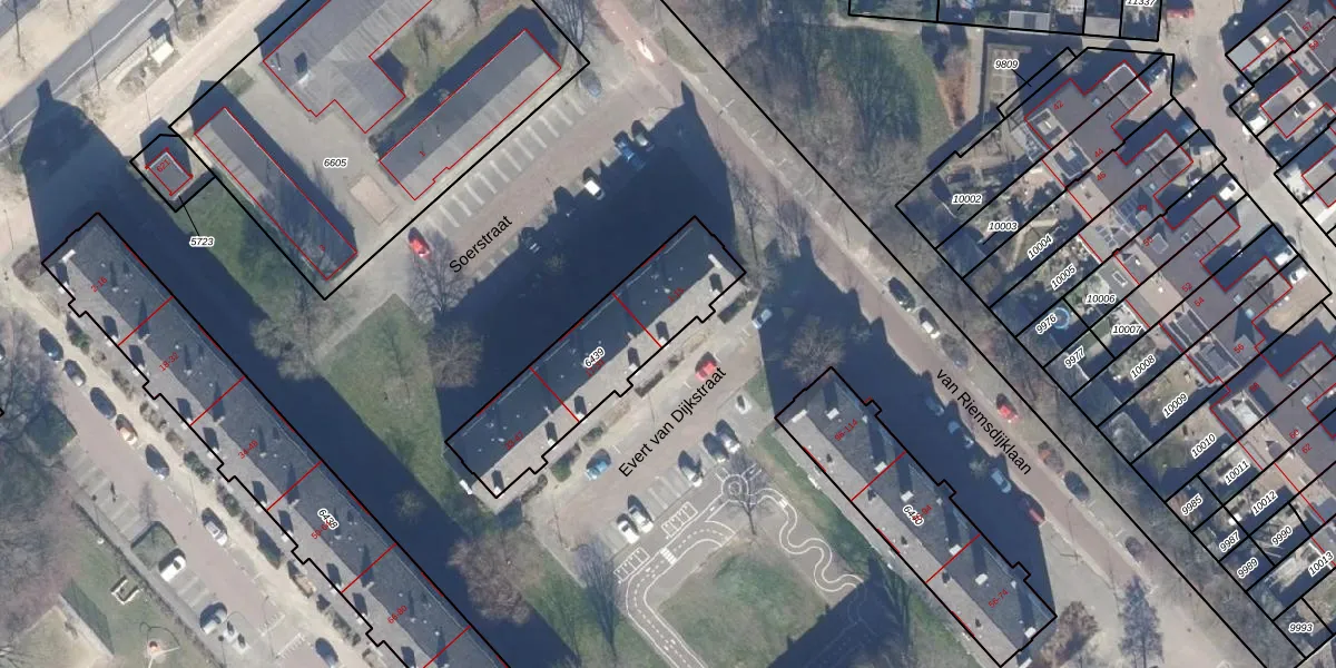 Het perceel waarop Evert van Dijkstraat 1 staat heeft een oppervlakte van 581 m². Dit is een groot perceel. De perceeloppervlakte wordt geregistreerd door het Kadaster. Gedetailleerde informatie over de maten van dit perceel kunt u vinden in het rapport Kadastrale kaart met maatvoering van Evert van Dijkstraat 1.