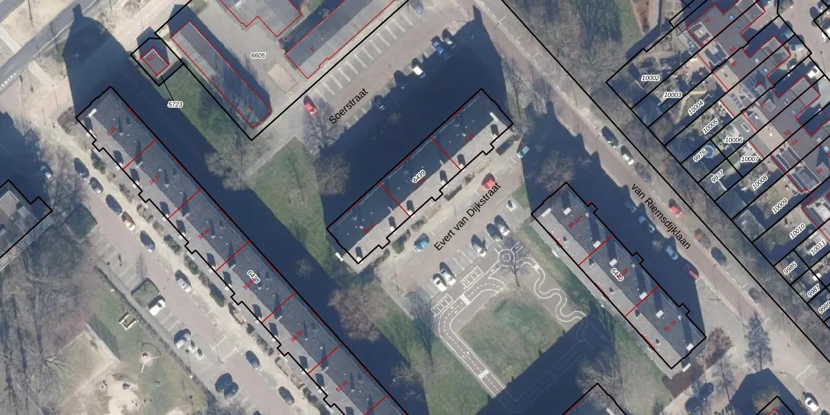 Het perceel waarop Evert van Dijkstraat 17 staat heeft een oppervlakte van 581 m². Dit is een groot perceel. De perceeloppervlakte wordt geregistreerd door het Kadaster. Gedetailleerde informatie over de maten van dit perceel kunt u vinden in het rapport Kadastrale kaart met maatvoering van Evert van Dijkstraat 17.