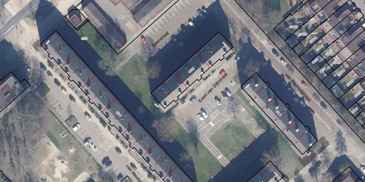 Het perceel waarop Evert van Dijkstraat 39 staat heeft een oppervlakte van 581 m². Dit is een groot perceel. De perceeloppervlakte wordt geregistreerd door het Kadaster. Gedetailleerde informatie over de maten van dit perceel kunt u vinden in het rapport Kadastrale kaart met maatvoering van Evert van Dijkstraat 39.