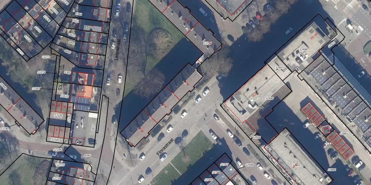 Het perceel waarop Florastraat 44 staat heeft een oppervlakte van 1203 m². Dit is een zeer groot perceel. De perceeloppervlakte wordt geregistreerd door het Kadaster. Gedetailleerde informatie over de maten van dit perceel kunt u vinden in het rapport Kadastrale kaart met maatvoering van Florastraat 44.
