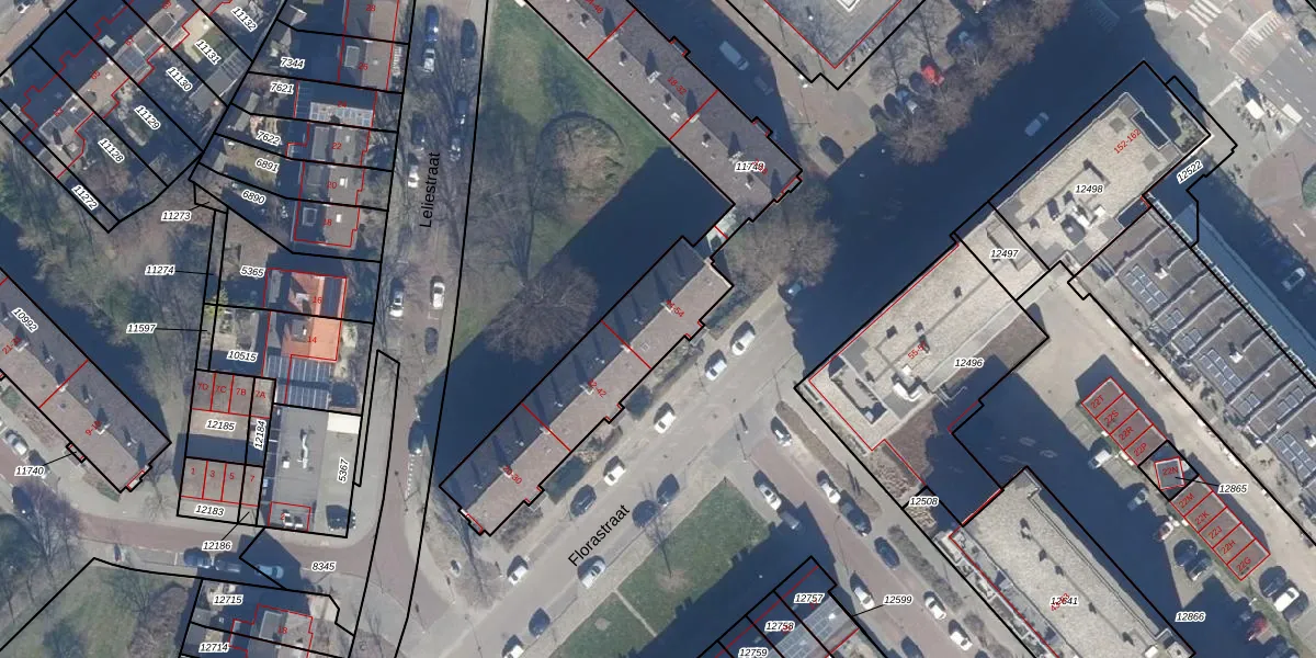Het perceel waarop Florastraat 50 staat heeft een oppervlakte van 1203 m². Dit is een zeer groot perceel. De perceeloppervlakte wordt geregistreerd door het Kadaster. Gedetailleerde informatie over de maten van dit perceel kunt u vinden in het rapport Kadastrale kaart met maatvoering van Florastraat 50.