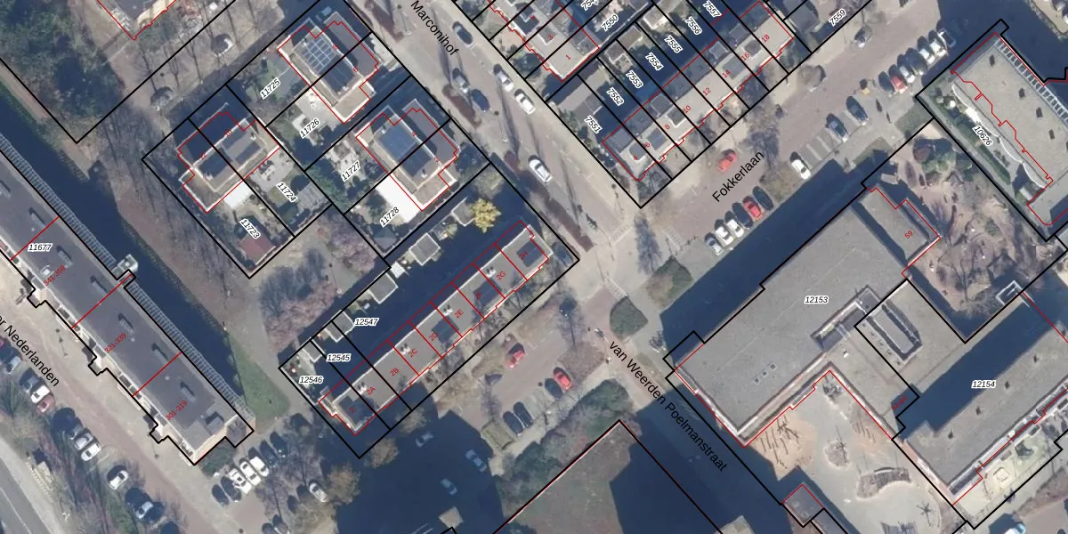 Het perceel waarop Fokkerlaan 2-H staat heeft een oppervlakte van 1005 m². Dit is een zeer groot perceel. De perceeloppervlakte wordt geregistreerd door het Kadaster. Gedetailleerde informatie over de maten van dit perceel kunt u vinden in het rapport Kadastrale kaart met maatvoering van Fokkerlaan 2-H.