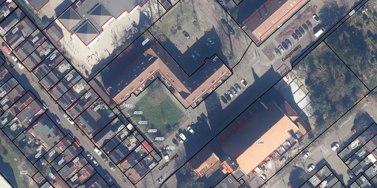 Het perceel waarop Galgenweg 2-15 staat heeft een oppervlakte van 1505 m². Dit is een zeer groot perceel. De perceeloppervlakte wordt geregistreerd door het Kadaster. Gedetailleerde informatie over de maten van dit perceel kunt u vinden in het rapport Kadastrale kaart met maatvoering van Galgenweg 2-15.