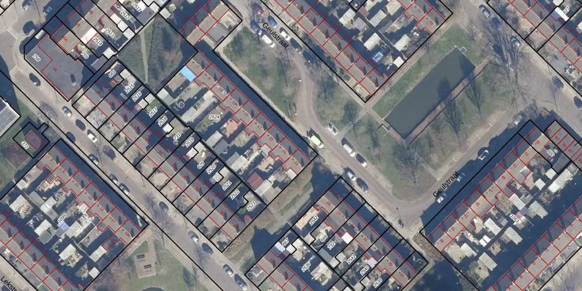 Het perceel waarop Geulstraat 21 staat heeft een oppervlakte van 1740 m². Dit is een zeer groot perceel. De perceeloppervlakte wordt geregistreerd door het Kadaster. Gedetailleerde informatie over de maten van dit perceel kunt u vinden in het rapport Kadastrale kaart met maatvoering van Geulstraat 21.
