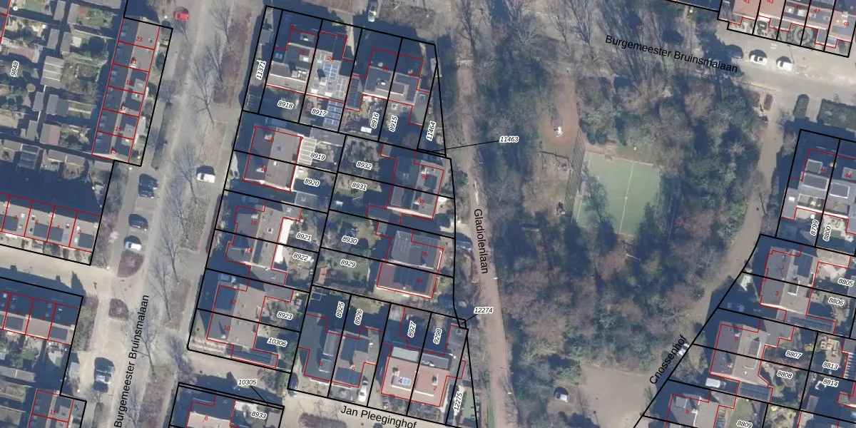 Het perceel waarop Gladiolenlaan 88 staat heeft een oppervlakte van 265 m². Dit is een middelgroot perceel. De perceeloppervlakte wordt geregistreerd door het Kadaster. Gedetailleerde informatie over de maten van dit perceel kunt u vinden in het rapport Kadastrale kaart met maatvoering van Gladiolenlaan 88.