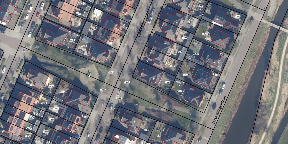 Het perceel waarop Glenn Millerlaan 12 staat heeft een oppervlakte van 369 m². Dit is een groot perceel. De perceeloppervlakte wordt geregistreerd door het Kadaster. Gedetailleerde informatie over de maten van dit perceel kunt u vinden in het rapport Kadastrale kaart met maatvoering van Glenn Millerlaan 12.
