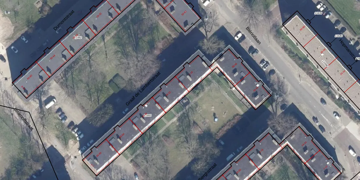 Het perceel waarop Graaf de Lambertstraat 30 staat heeft een oppervlakte van 1494 m². Dit is een zeer groot perceel. De perceeloppervlakte wordt geregistreerd door het Kadaster. Gedetailleerde informatie over de maten van dit perceel kunt u vinden in het rapport Kadastrale kaart met maatvoering van Graaf de Lambertstraat 30.