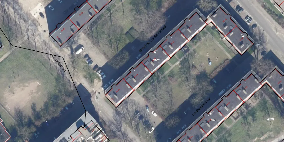 Het perceel waarop Graaf de Lambertstraat 56 staat heeft een oppervlakte van 1494 m². Dit is een zeer groot perceel. De perceeloppervlakte wordt geregistreerd door het Kadaster. Gedetailleerde informatie over de maten van dit perceel kunt u vinden in het rapport Kadastrale kaart met maatvoering van Graaf de Lambertstraat 56.