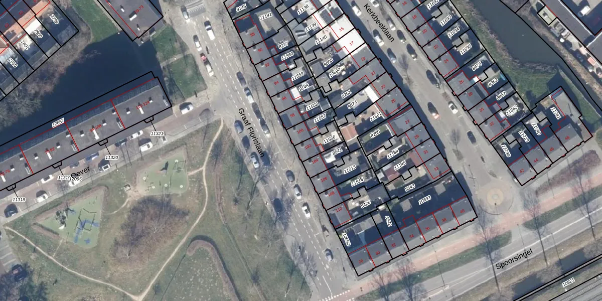 Het perceel waarop Graaf Florislaan 102 staat heeft een oppervlakte van 99 m². Dit is een klein perceel. De perceeloppervlakte wordt geregistreerd door het Kadaster. Gedetailleerde informatie over de maten van dit perceel kunt u vinden in het rapport Kadastrale kaart met maatvoering van Graaf Florislaan 102.