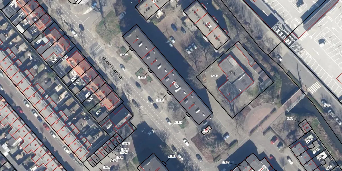 Het perceel waarop Graaf Florislaan 54 staat heeft een oppervlakte van 747 m². Dit is een groot perceel. De perceeloppervlakte wordt geregistreerd door het Kadaster. Gedetailleerde informatie over de maten van dit perceel kunt u vinden in het rapport Kadastrale kaart met maatvoering van Graaf Florislaan 54.