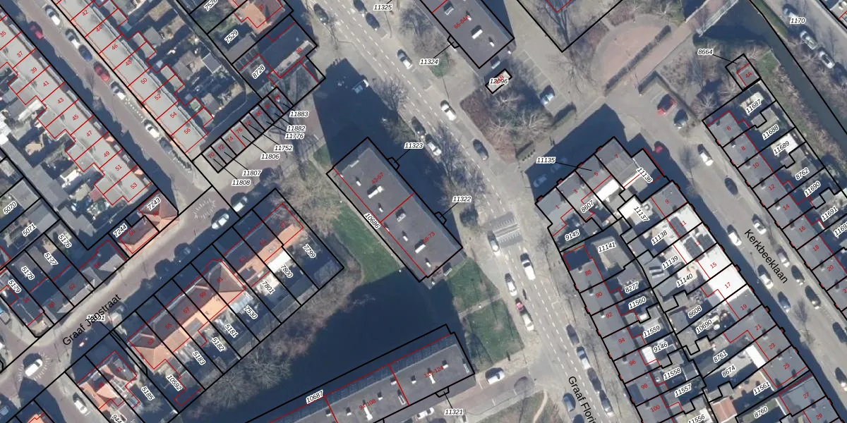 Het perceel waarop Graaf Florislaan 65 staat heeft een oppervlakte van 442 m². Dit is een groot perceel. De perceeloppervlakte wordt geregistreerd door het Kadaster. Gedetailleerde informatie over de maten van dit perceel kunt u vinden in het rapport Kadastrale kaart met maatvoering van Graaf Florislaan 65.