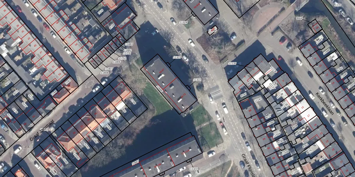 Het perceel waarop Graaf Florislaan 73 staat heeft een oppervlakte van 442 m². Dit is een groot perceel. De perceeloppervlakte wordt geregistreerd door het Kadaster. Gedetailleerde informatie over de maten van dit perceel kunt u vinden in het rapport Kadastrale kaart met maatvoering van Graaf Florislaan 73.