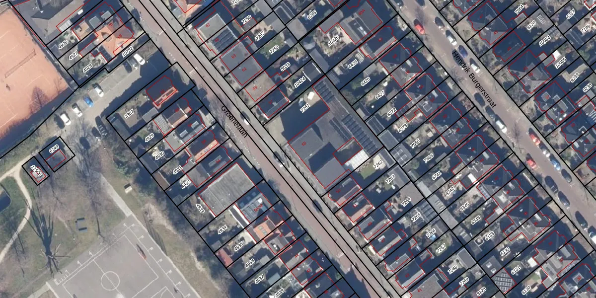 Het perceel waarop Groenelaan 55 staat heeft een oppervlakte van 843 m². Dit is een groot perceel. De perceeloppervlakte wordt geregistreerd door het Kadaster. Gedetailleerde informatie over de maten van dit perceel kunt u vinden in het rapport Kadastrale kaart met maatvoering van Groenelaan 55.