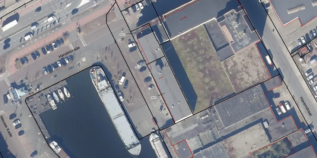 Het perceel waarop Handelskade 2 staat heeft een oppervlakte van 527 m². Dit is een groot perceel. De perceeloppervlakte wordt geregistreerd door het Kadaster. Gedetailleerde informatie over de maten van dit perceel kunt u vinden in het rapport Kadastrale kaart met maatvoering van Handelskade 2.