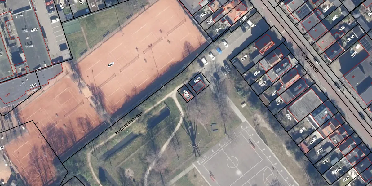 Het perceel waarop Harmonielaantje 3 staat heeft een oppervlakte van 42 m². Dit is een klein perceel. De perceeloppervlakte wordt geregistreerd door het Kadaster. Gedetailleerde informatie over de maten van dit perceel kunt u vinden in het rapport Kadastrale kaart met maatvoering van Harmonielaantje 3.