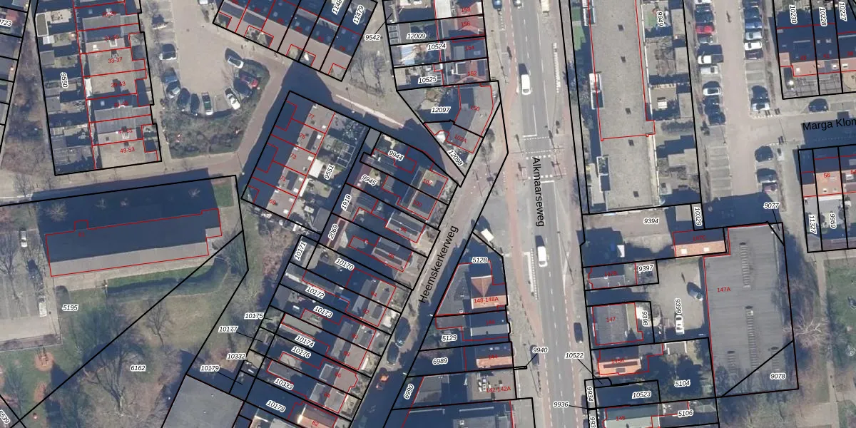 Gebruik de zoekbalk of klik op een perceel voor informatie over de adressen binnen dit perceel.