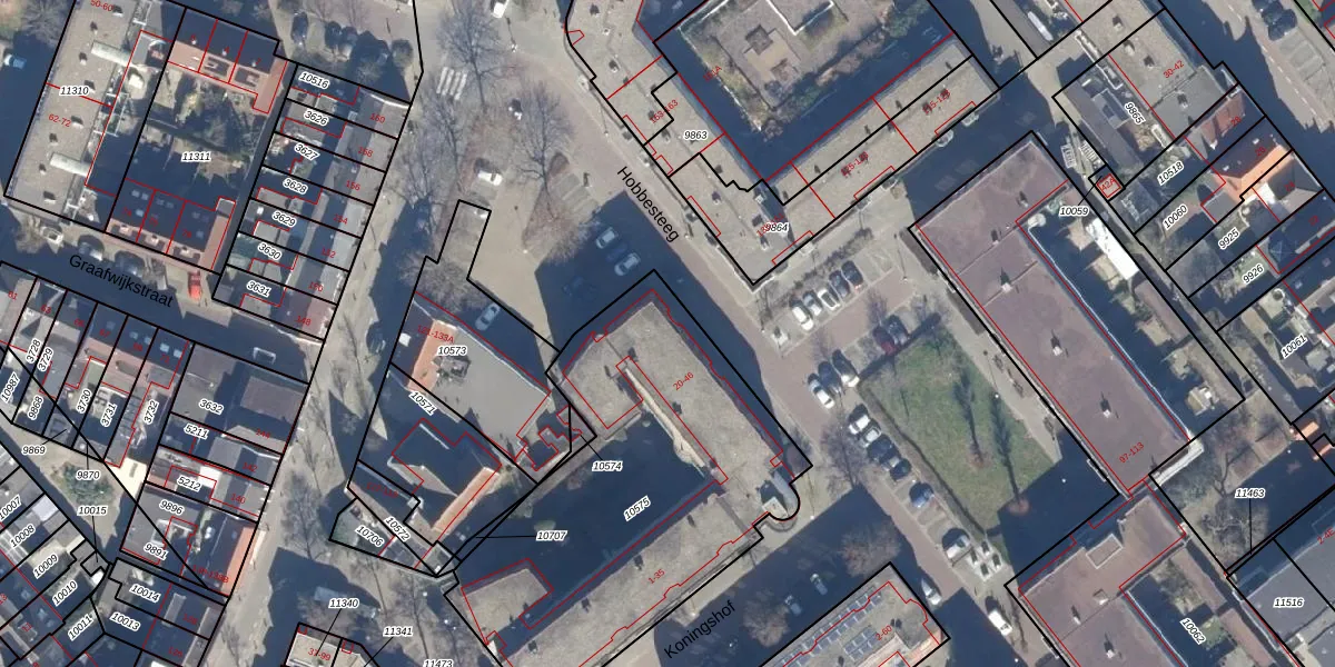 Het perceel waarop Hobbesteeg 24 staat heeft een oppervlakte van 1761 m². Dit is een zeer groot perceel. De perceeloppervlakte wordt geregistreerd door het Kadaster. Gedetailleerde informatie over de maten van dit perceel kunt u vinden in het rapport Kadastrale kaart met maatvoering van Hobbesteeg 24.