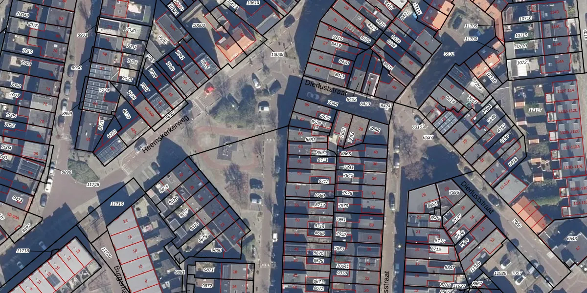 Gebruik de zoekbalk of klik op een perceel voor informatie over de adressen binnen dit perceel.