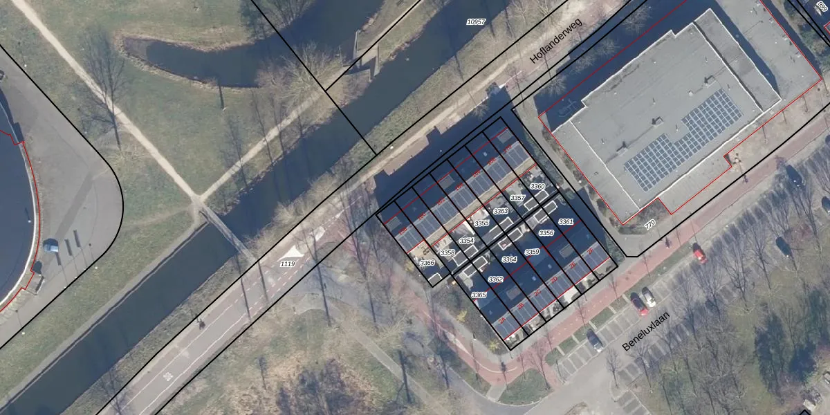 Gebruik de zoekbalk of klik op een perceel voor informatie over de adressen binnen dit perceel.