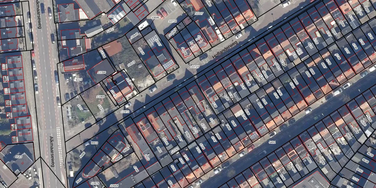 Gebruik de zoekbalk of klik op een perceel voor informatie over de adressen binnen dit perceel.